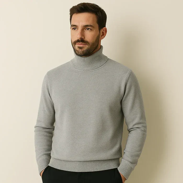 Dieser elegante Rollkragenpullover wurde entworfen, um Komfort und Wärmeisolierung für den täglichen Gebrauch zu bieten. Sein weicher, atmungsaktiver Stoff sorgt für ein angenehmes Tragegefühl auf der Haut und bietet gleichzeitig hervorragende Wärmespeicherung. Das schlichte Design und die sorgfältige Verarbeitung machen ihn zu einem eleganten und zeitlosen Kleidungsstück – perfekt für jede Gelegenheit.